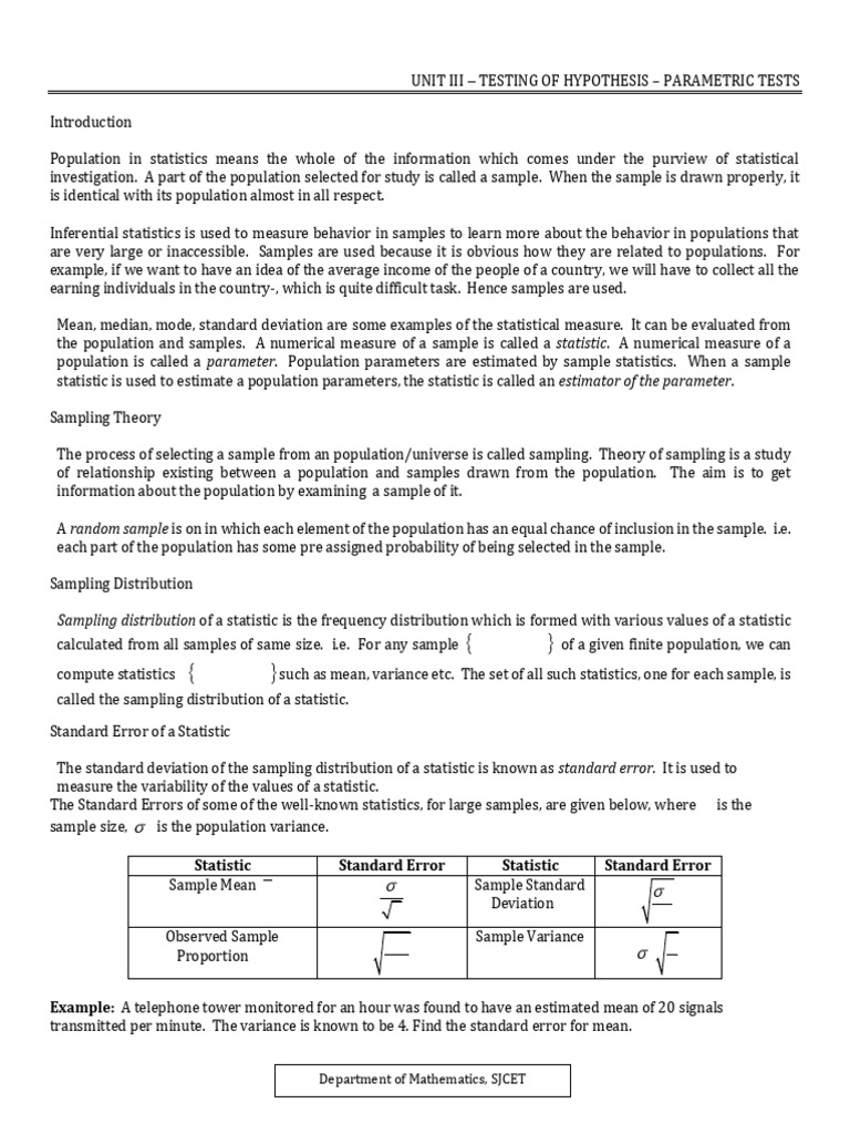 Sampling theory deals with a problem of testing hypothesis. A hypothesis is a statement about the