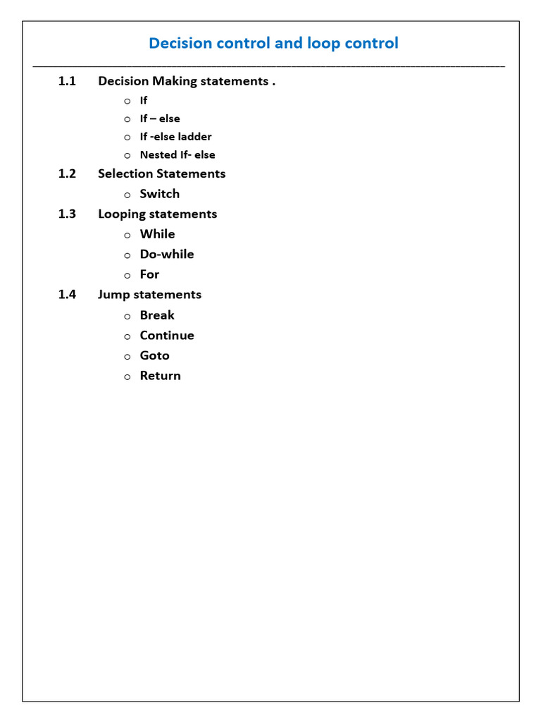 o Exit controlled loops : Test condition is checked after evaluating loop