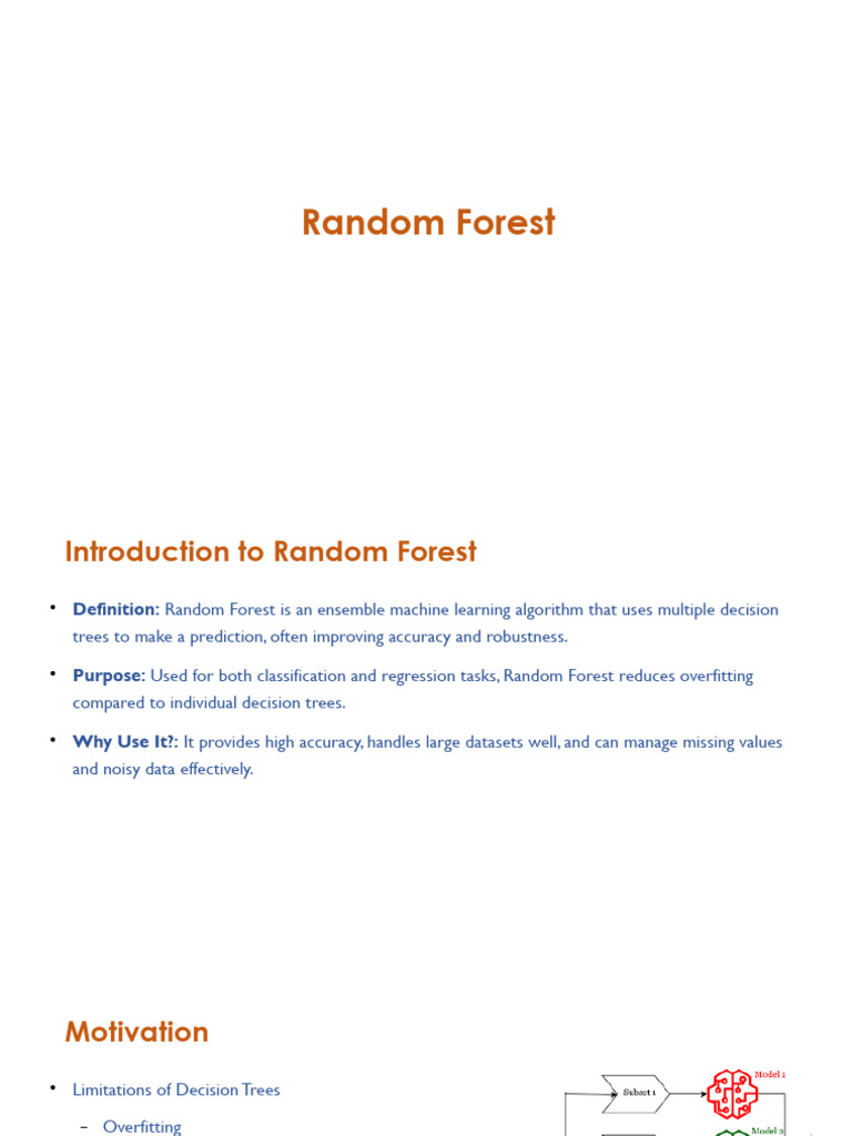 Definition: Random Forest is an ensemble machine learning algorithm that uses multiple decision