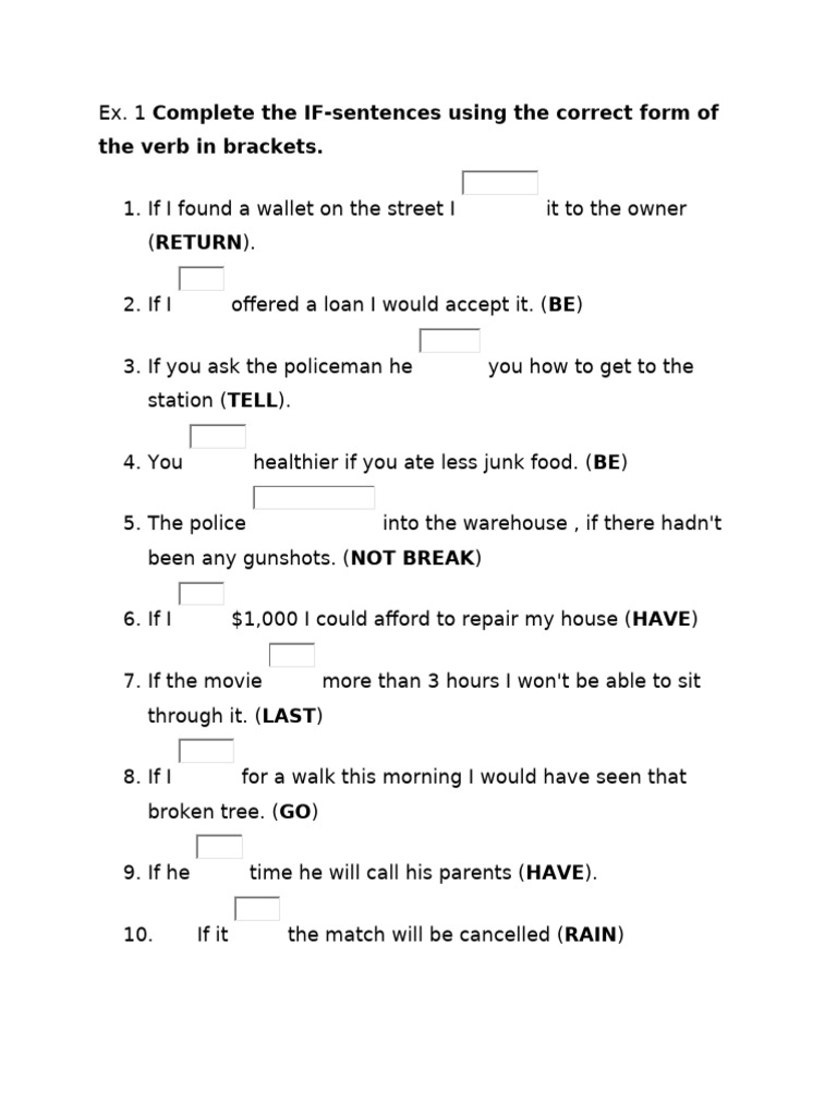 Ex. 3 Complete the following sentences. Use the words in brackets