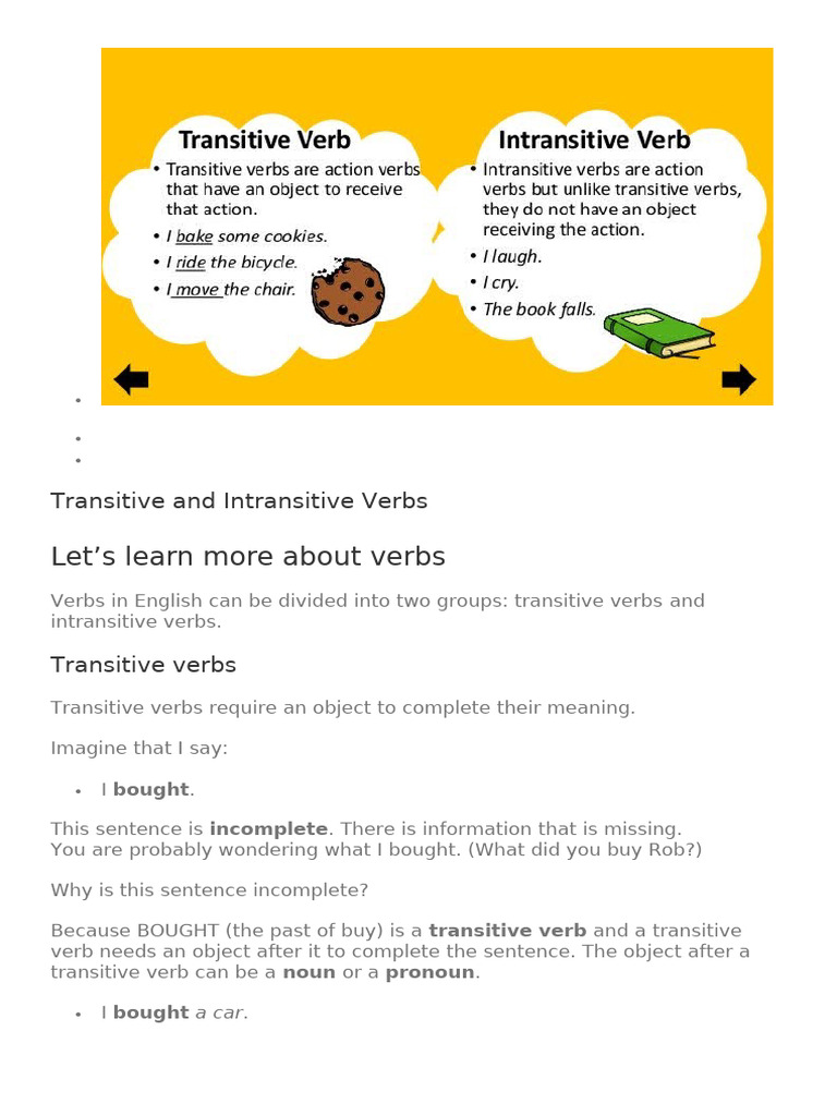 (usually vt. or tr. next to the verb in dictionaries) or intransitive (vi. or intr.)
