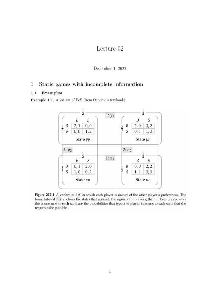 Example 1.1. A variant of BoS (from Osborne’s textbook)