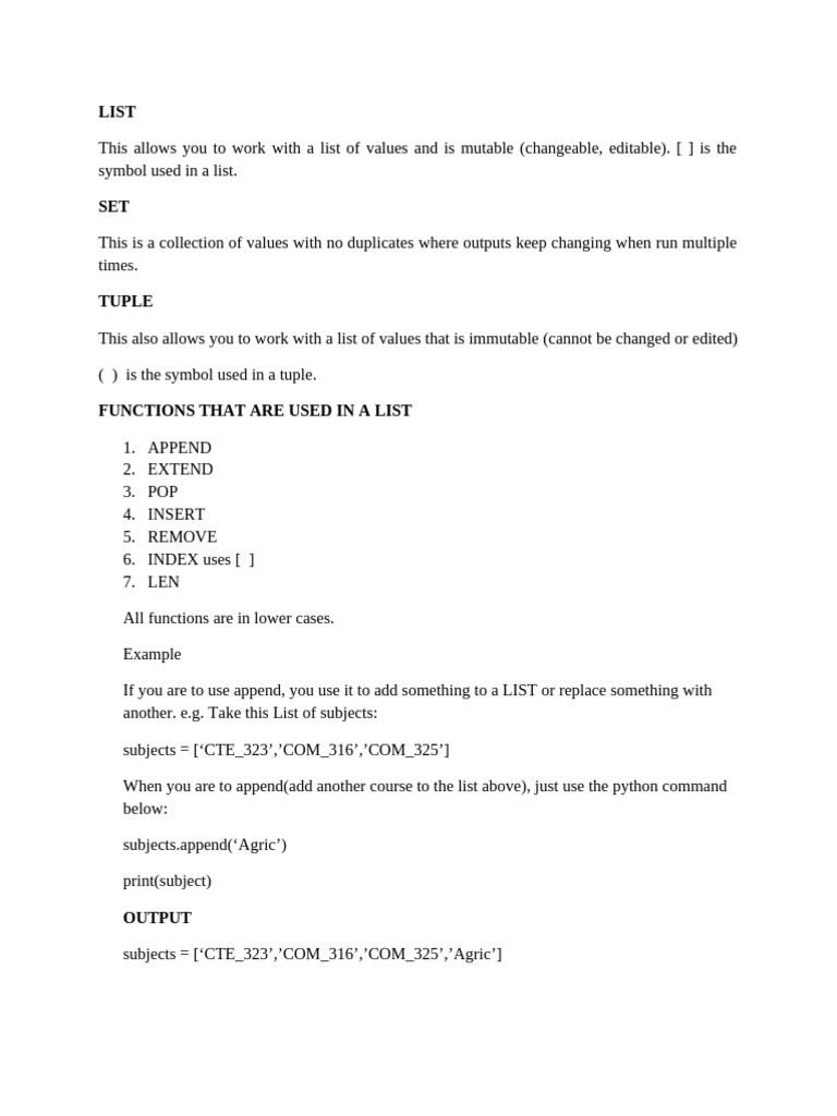 1. lagos_1 = [‘History’, ‘Math’, ‘Physics’, ‘Computer Science’]