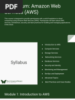 • Understand the fundamentals of AWS Cloud, including its global infrastructure, service models,
