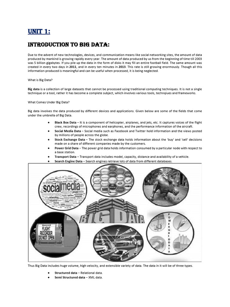 • These large amount of data on which these type of analysis is to be done can be structured (organized