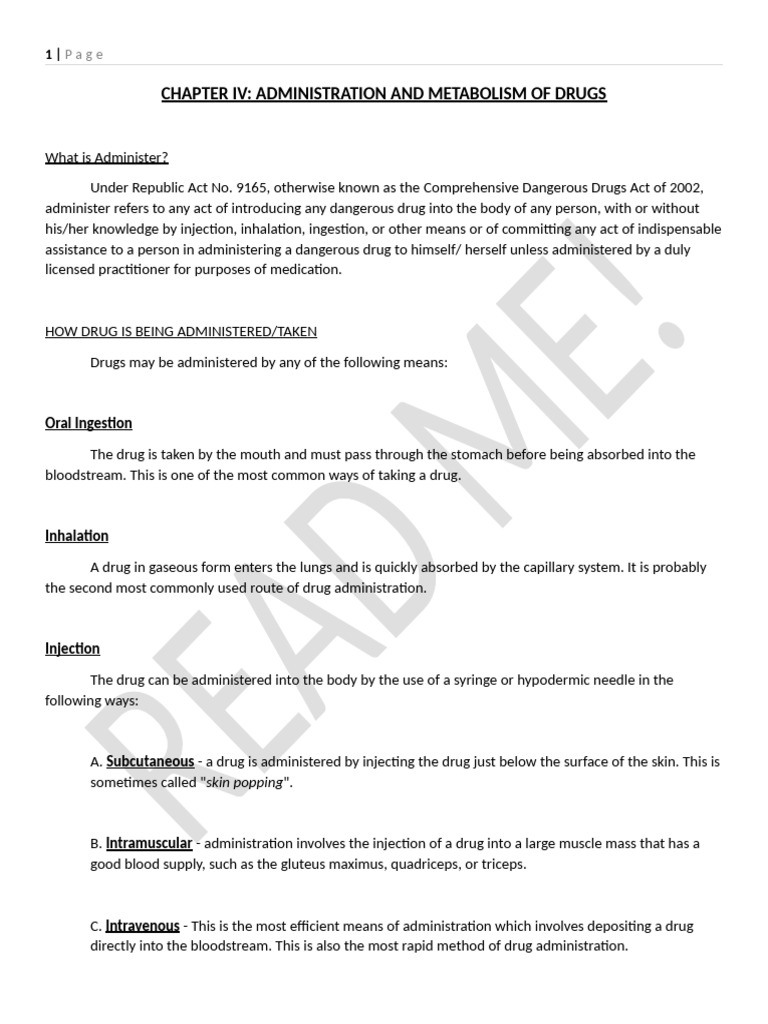 CHAPTER IV: ADMINISTRATION AND METABOLISM OF DRUGS