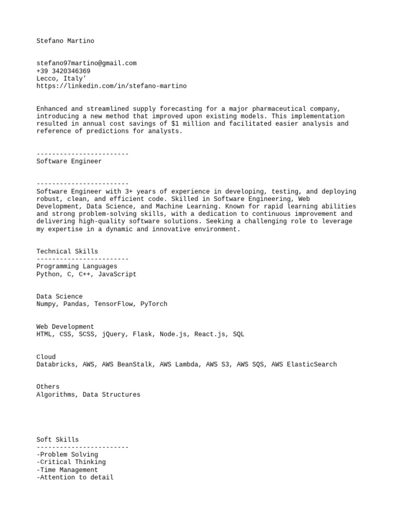 Development, Data Science, and Machine Learning. Known for rapid learning abilities