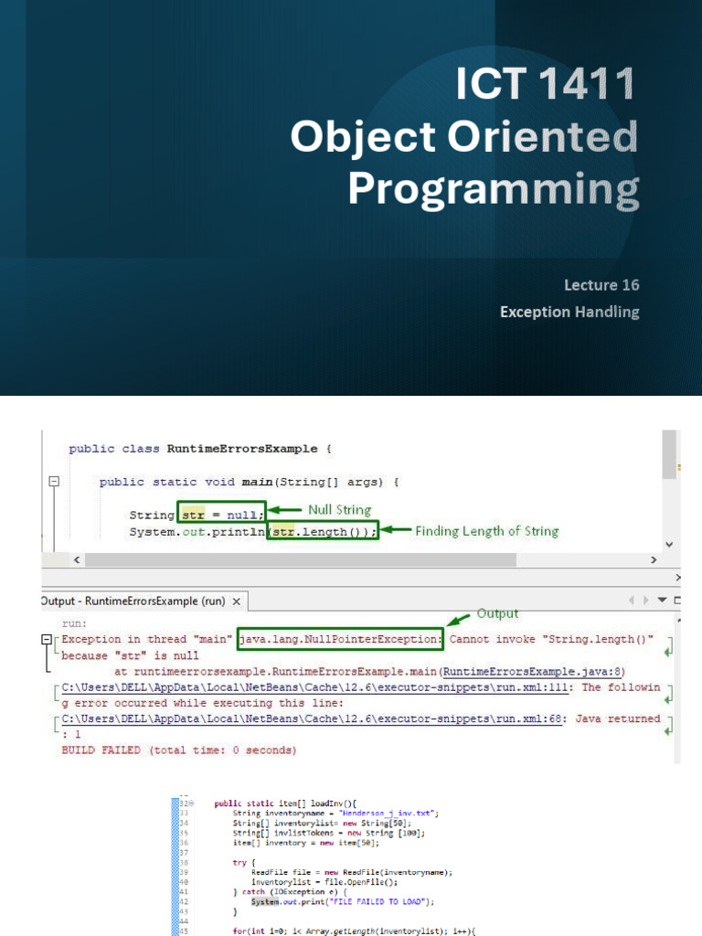 • Ex: ArithmeticException, NullPointerException, ArrayIndexOutOfBoundsEx