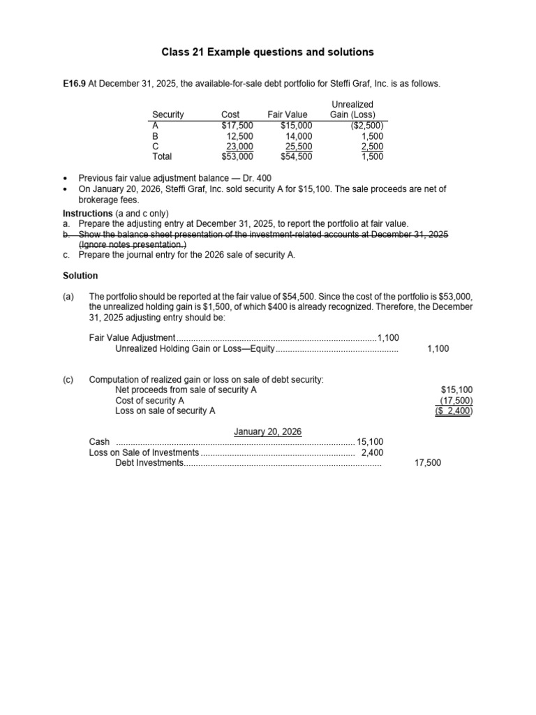 a. Prepare the adjusting entry at December 31, 2025, to report the portfolio at fair value.
