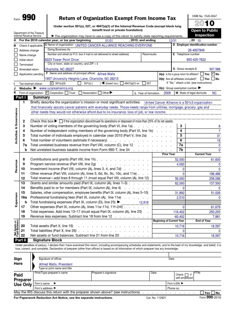 B Check if applicable: C Name of organization UNITED CANCER ALLIANCE REACHING EVERYONE D Employer identification number
