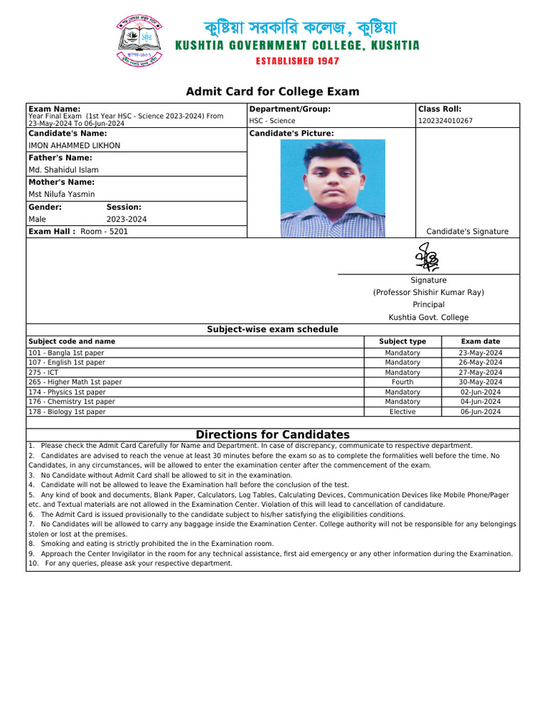 1. Please check the Admit Card Carefully for Name and Department. In case of discrepancy, communicate to respective department.