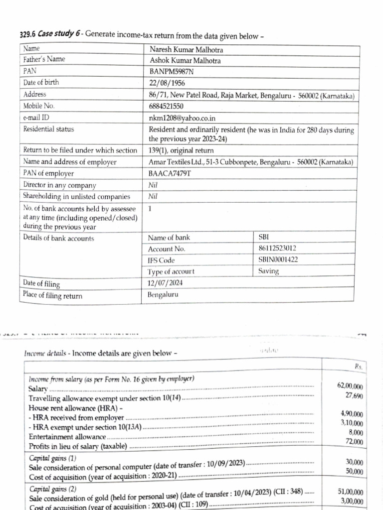 329,10 Case study 10- Generate income-tax return from the data given below -