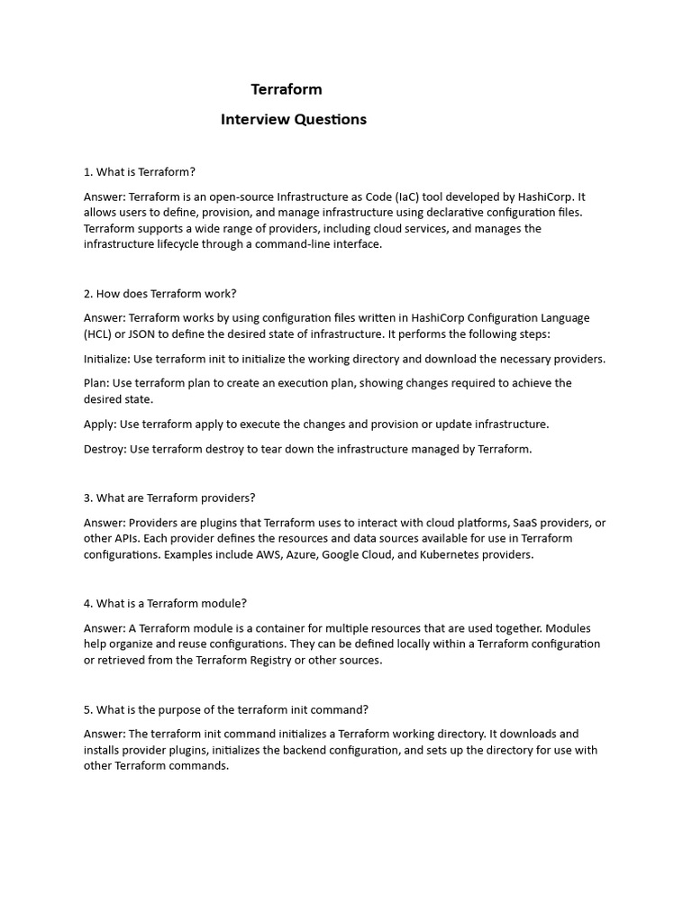 Answer: The terraform init command initializes a Terraform working directory. It downloads and