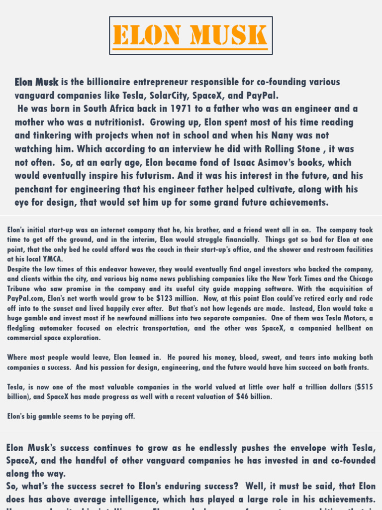 So, what’s the success secret to Elon’s enduring success? Well, it must be said, that Elon