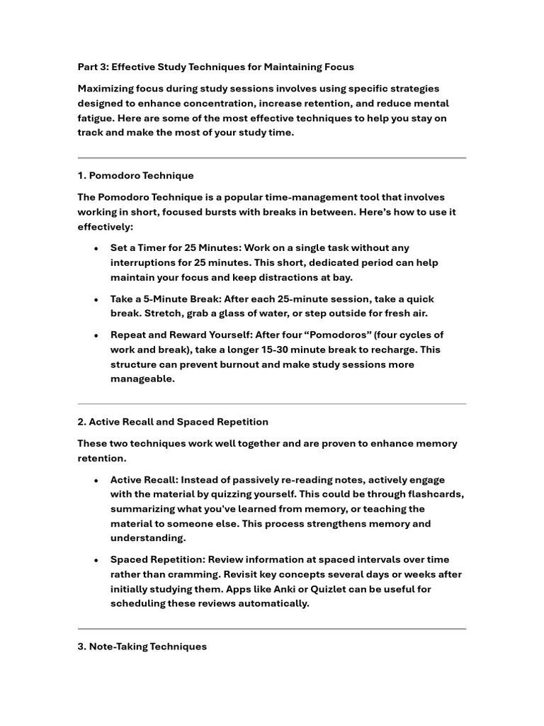 Part 3: Effective Study Techniques for Maintaining Focus