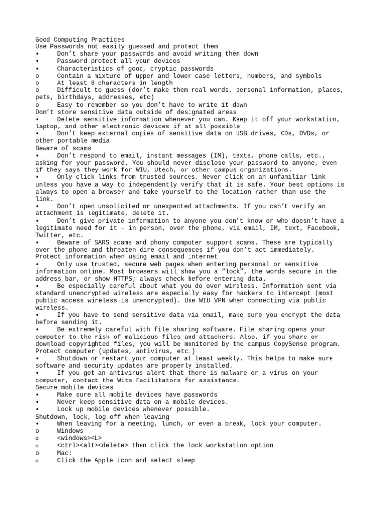 • Don’t keep external copies of sensitive data on USB drives, CDs, DVDs, or