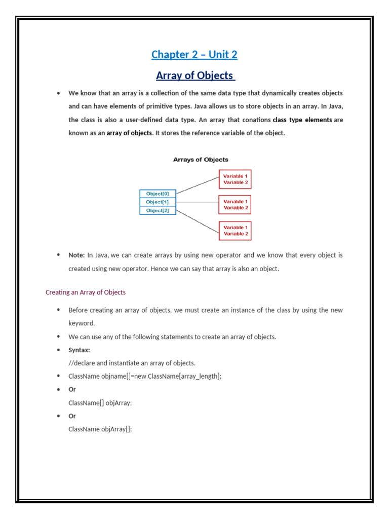 and can have elements of primitive types. Java allows us to store objects in an array. In Java,