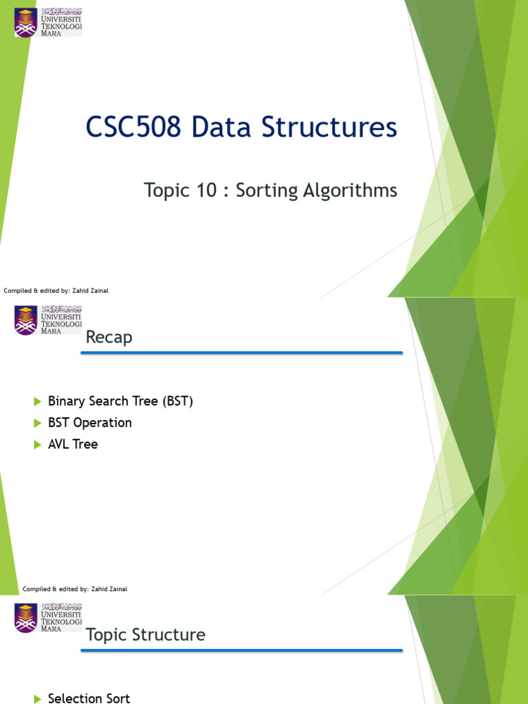 Sorting algorithm : Bubble sort, Selection sort, Insertion