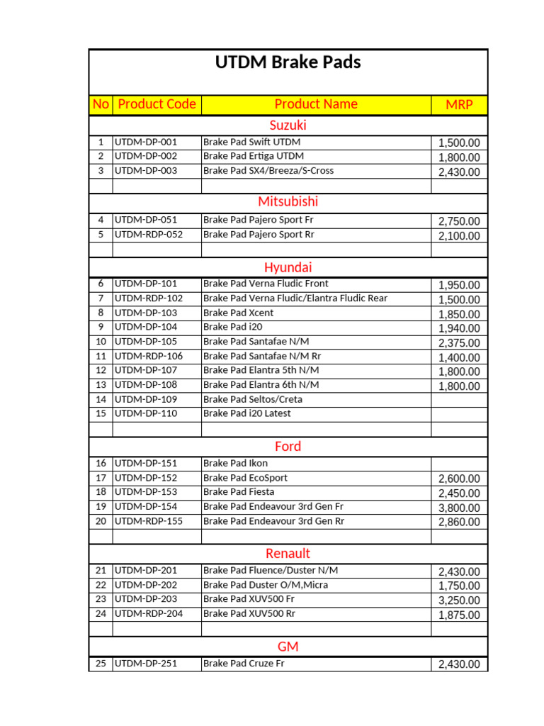 25 UTDM-DP-251 Brake Pad Cruze Fr 2,430.00