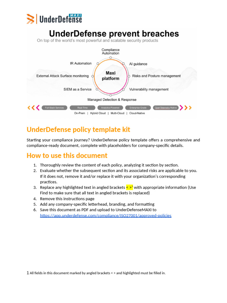 Starting your compliance journey? UnderDefense policy template offers a comprehensive and
