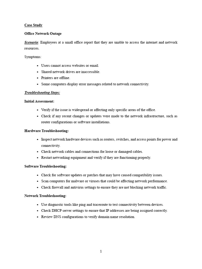 Scenario: Employees at a small office report that they are unable to access the internet and network