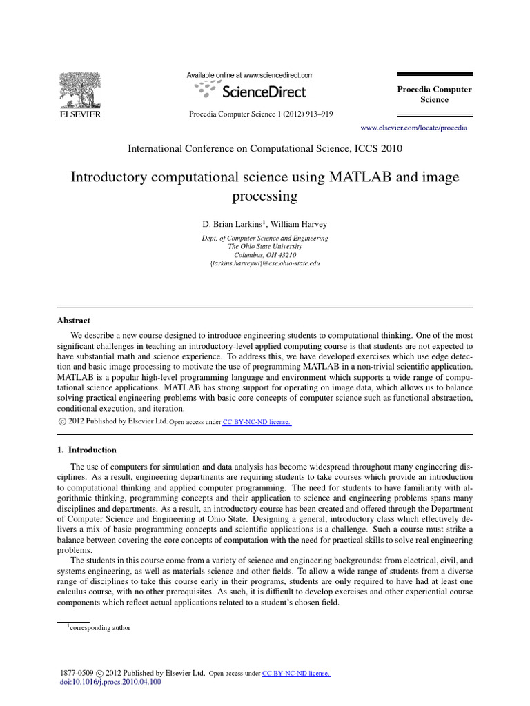 been successfully piloted at Ohio State and has been found to be a useful tool in engaging students in computational