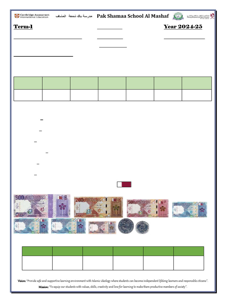 the following amounts: QR14, QR15, QR30, QR25, QR20, QR18,