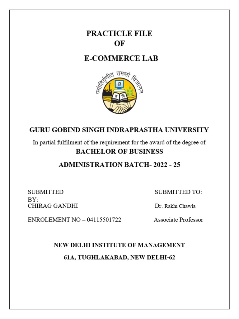 This is to certify that the practical file titled “E-COMMERCE LAB” submitted by
