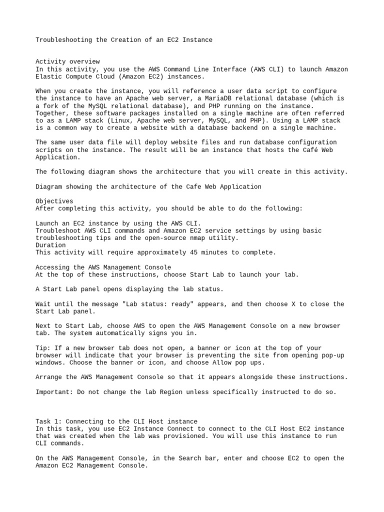 In this activity, you use the AWS Command Line Interface (AWS CLI) to launch Amazon