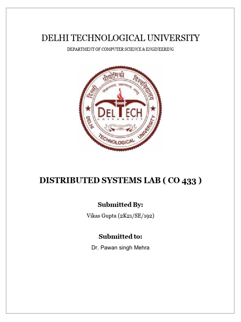 DISTRIBUTED SYSTEMS LAB ( CO 433 )