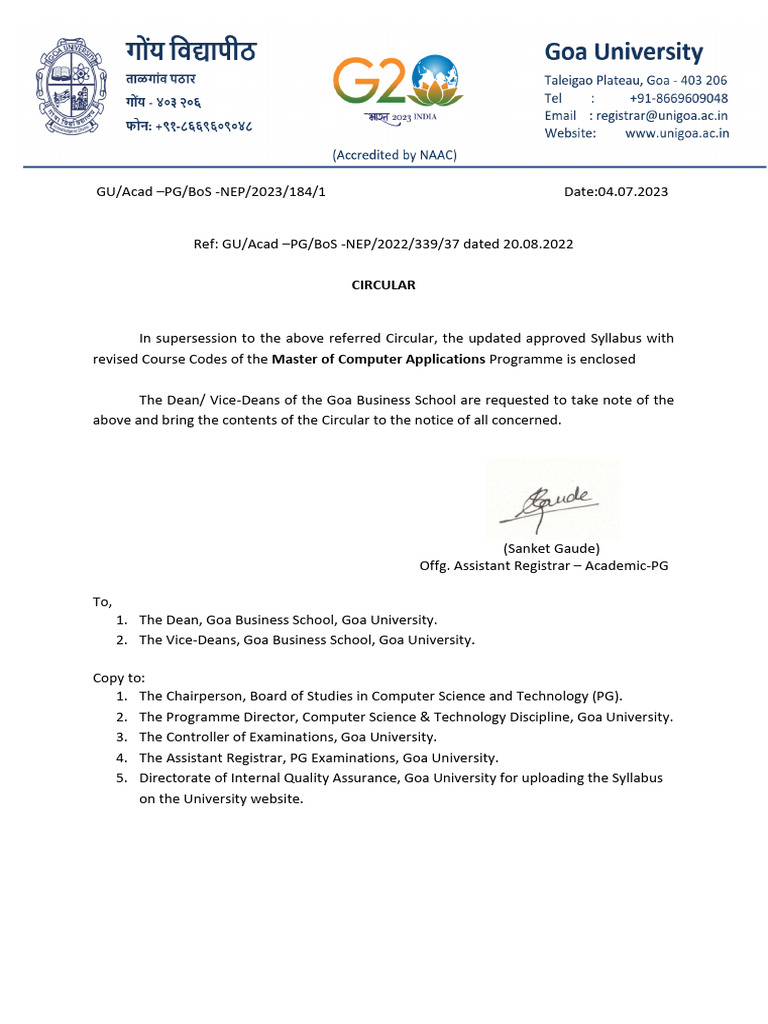 2. The Programme Director, Computer Science & Technology Discipline, Goa University.