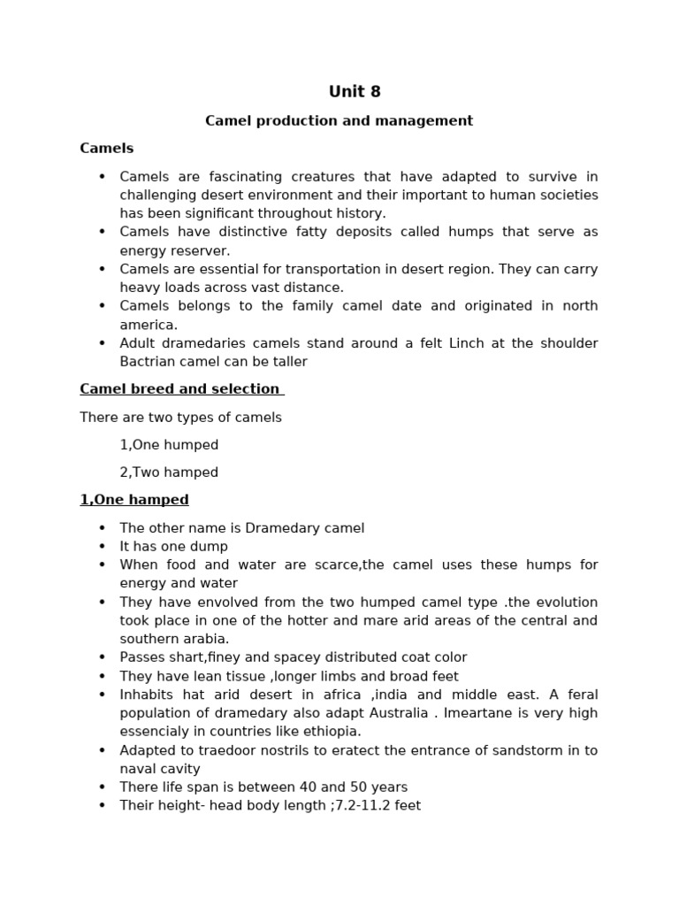 Camel is multipurpose animal used for production (meat, milk, wool,