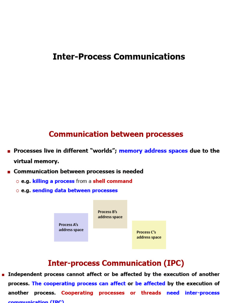 o Typically, a parent process creates a pipe and uses it to communicate with