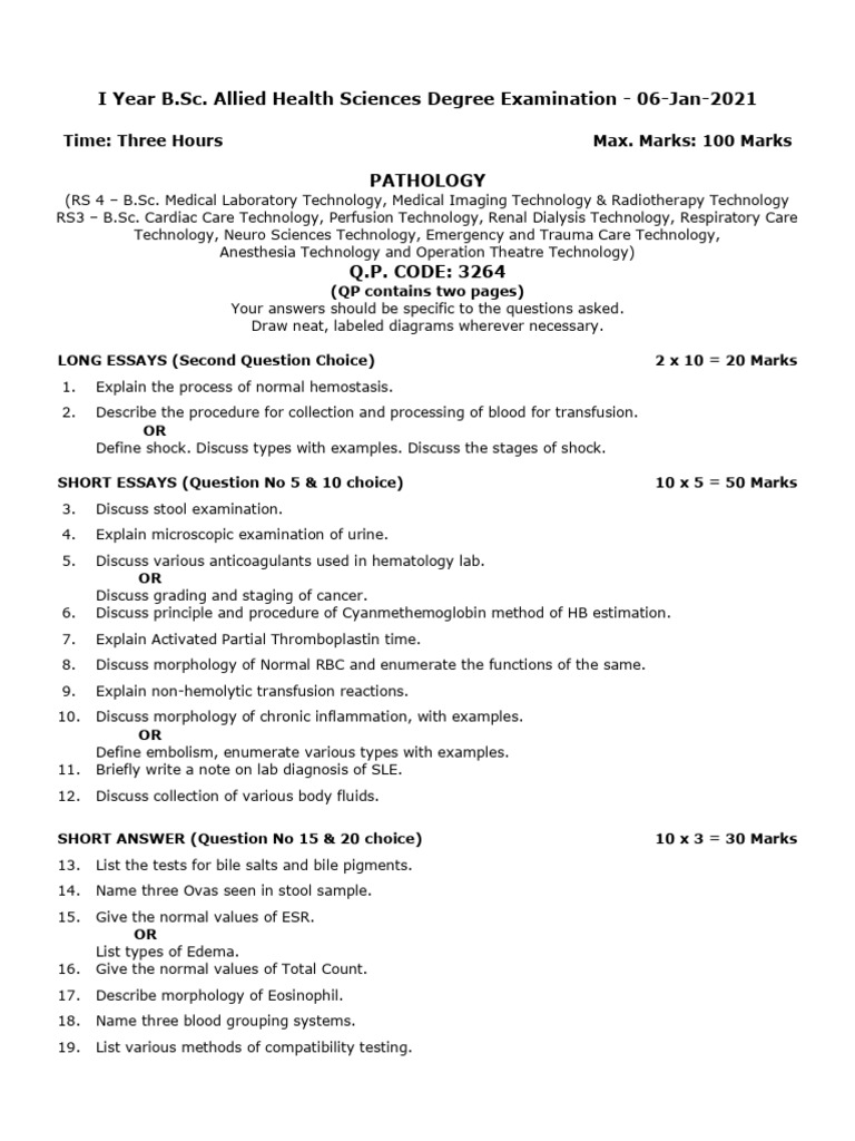 (RS-4 – B.Sc Medical Laboratory Technology, Medical Imaging Technology and Radiotherapy Technology)