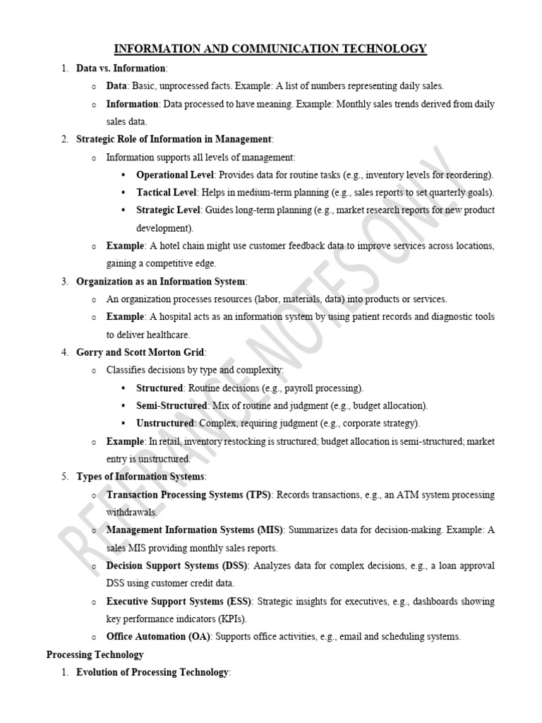o Management Information Systems (MIS): Summarizes data for decision-making. Example: A