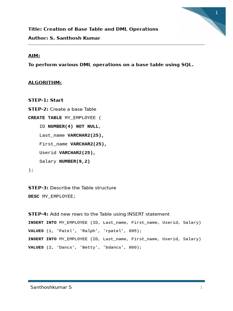 VALUES (1, 'Patel', 'Ralph', 'rpatel', 895);