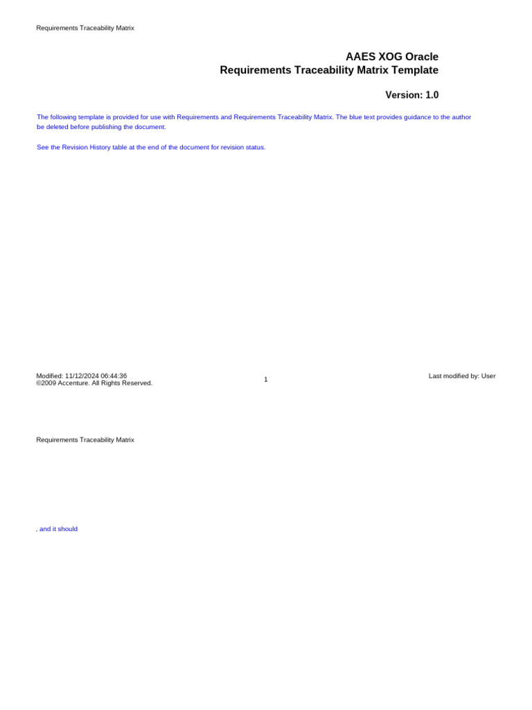 The following template is provided for use with Requirements and Requirements Traceability Matrix. The blue text provides guidance to the author, and it should