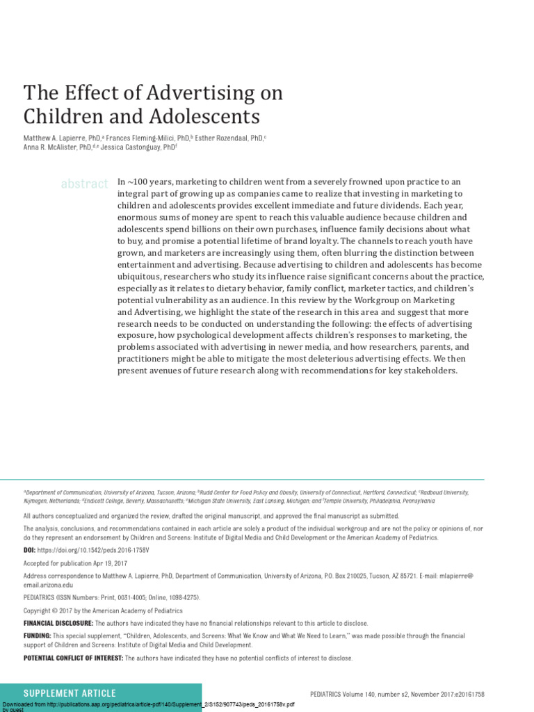 abstract In ∼100 years, marketing to children went from a severely frowned upon practice to an