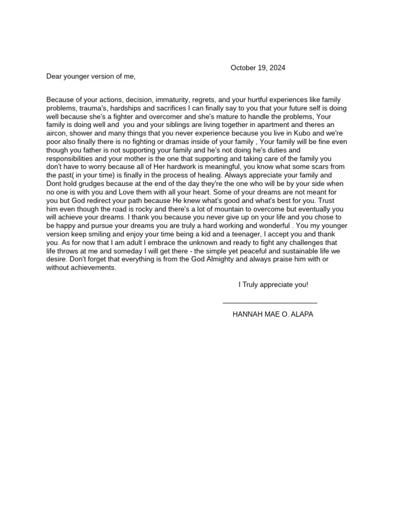 you. As for now that I am adult I embrace the unknown and ready to fight any challenges that