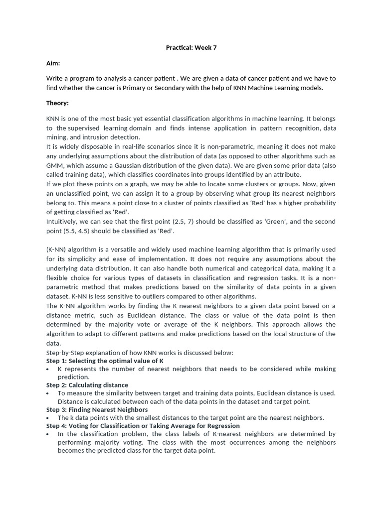 find whether the cancer is Primary or Secondary with the help of KNN Machine Learning models.