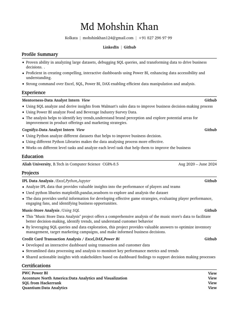 • Strong command over Excel, SQL, Power BI, DAX enabling efficient data manipulation and analysis.