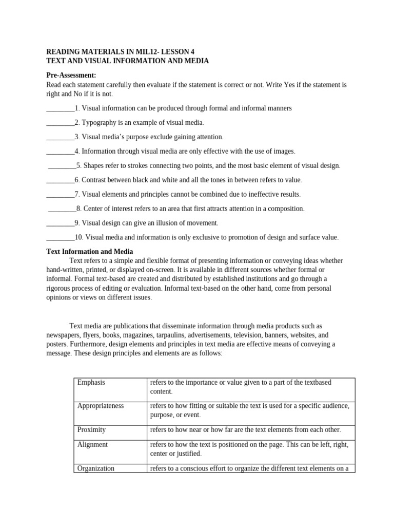 posters. Furthermore, design elements and principles in text media are effective means of conveying a