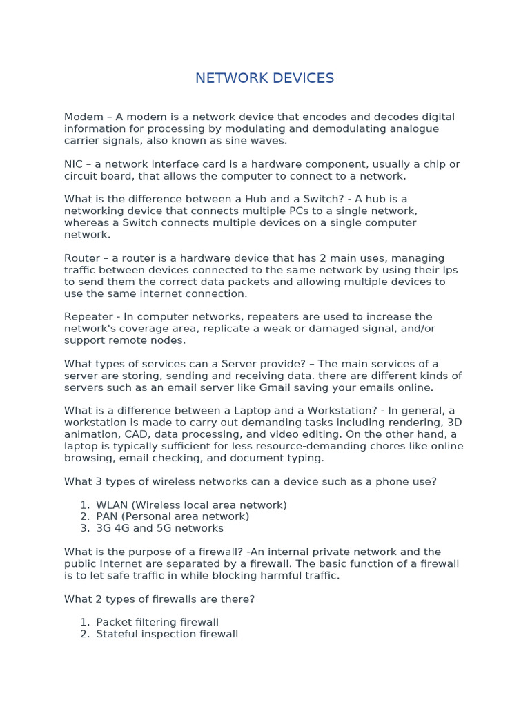 What is the difference between a Hub and a Switch? - A hub is a