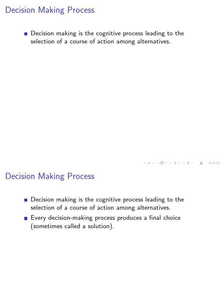 Decision making is the cognitive process leading to the