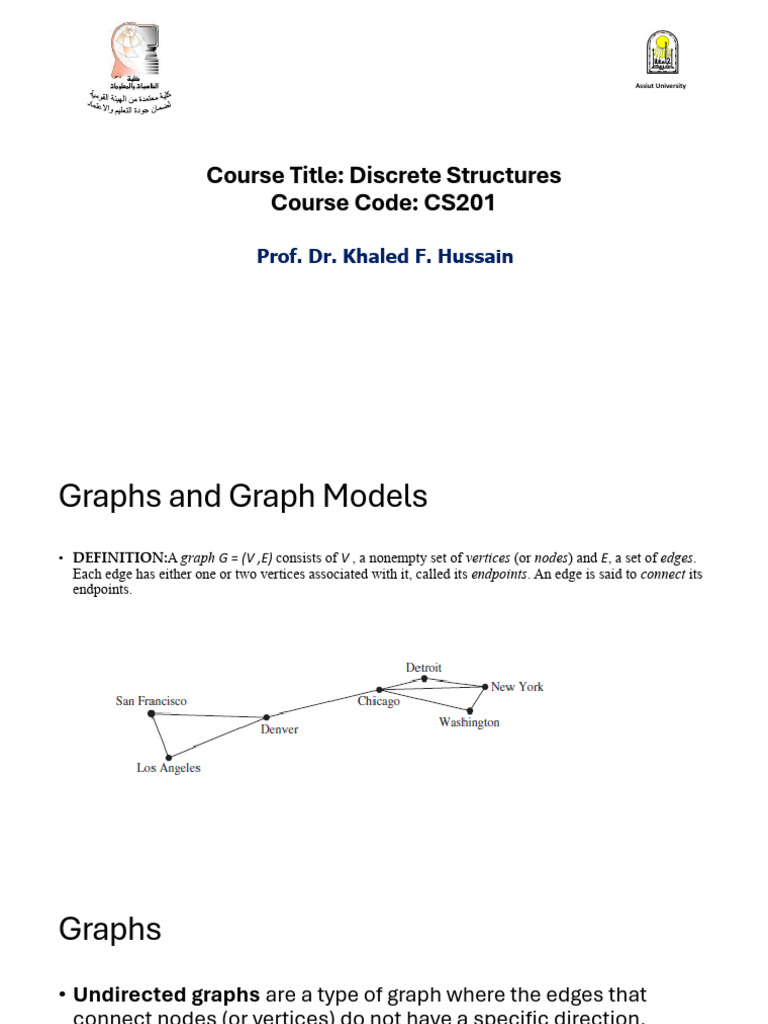 • DEFINITION:A graph G = (V ,E) consists of V , a nonempty set of vertices (or nodes) and E, a set of edges.