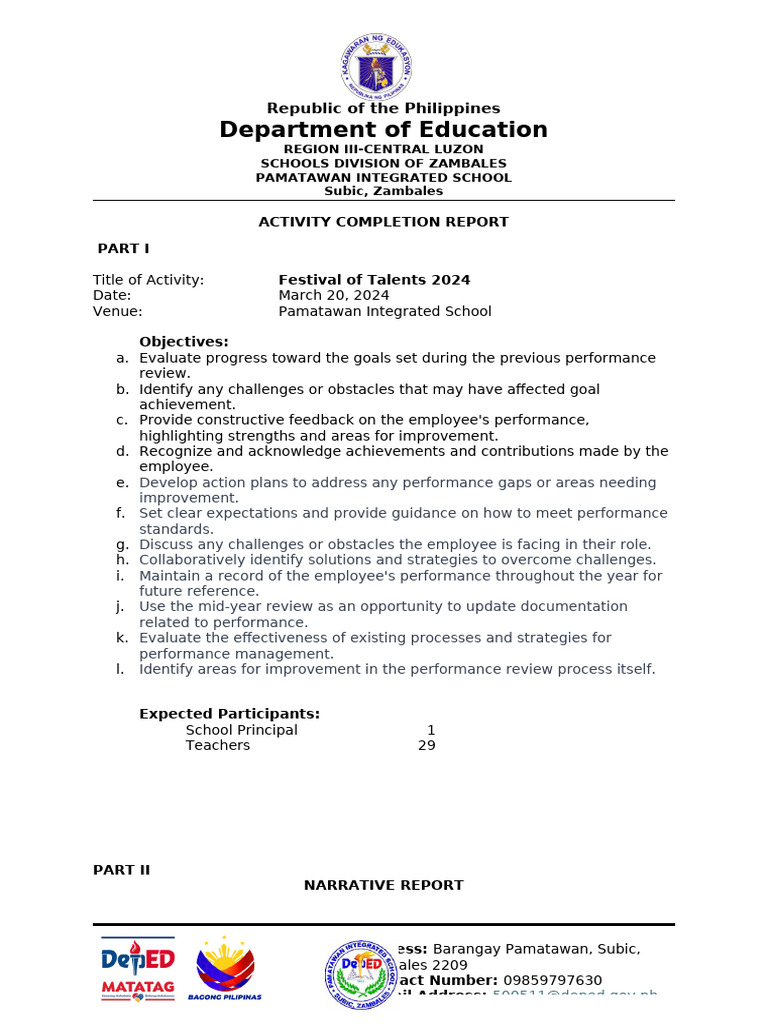 Performance Review And Evaluation (MPRE)”, Pamatawan Integrated School held