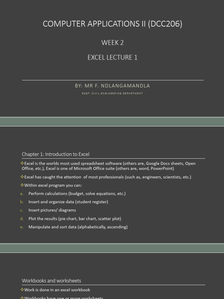 Excel is the worlds most used spreadsheet software (others are, Google Docs sheets, Open