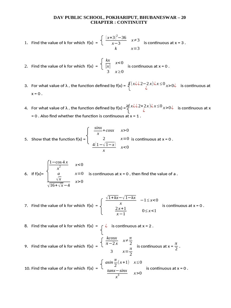 1. Find the value of k for which f(x) = x−3 is continuous at x = 3 .