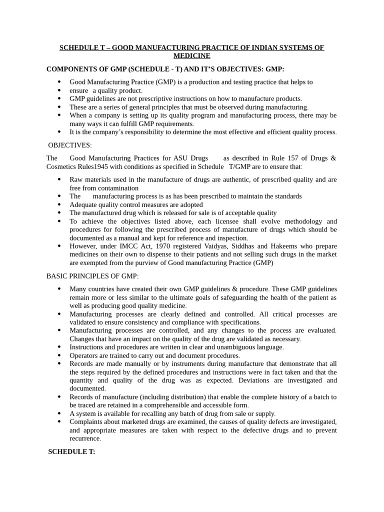 SCHEDULE T – GOOD MANUFACTURING PRACTICE OF INDIAN SYSTEMS OF