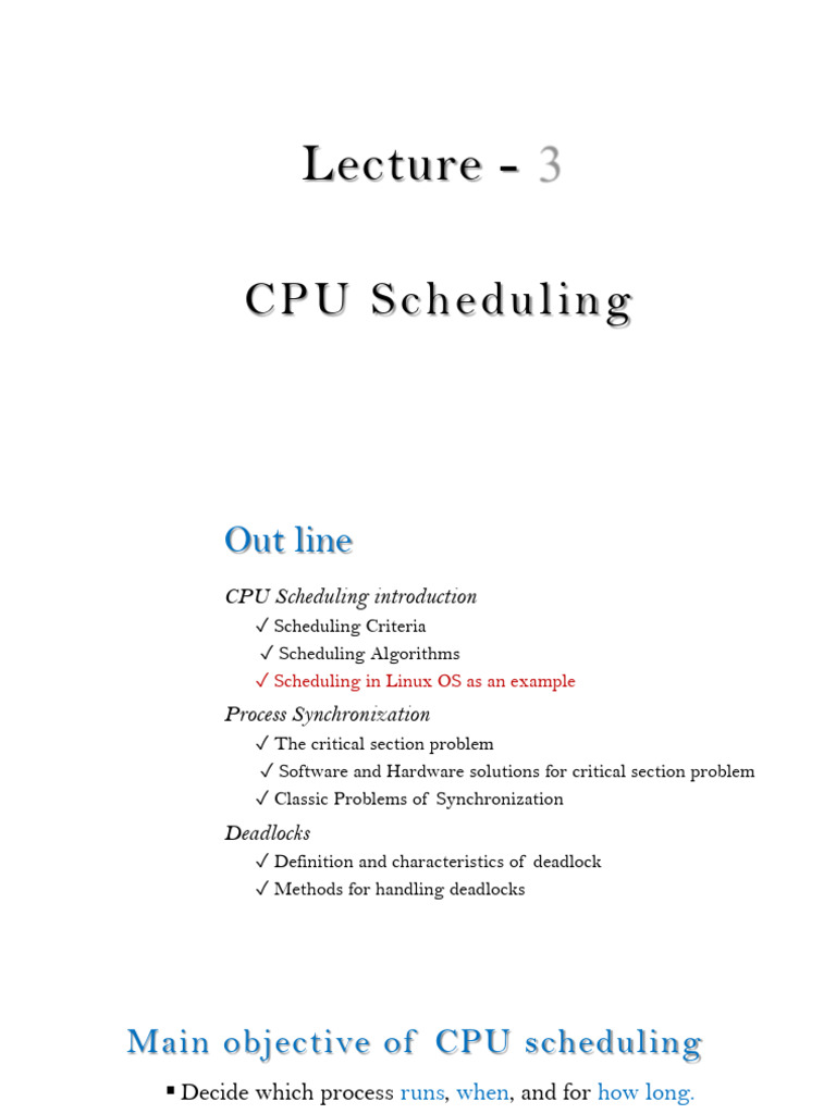 ✓ Scheduling in Linux OS as an example
